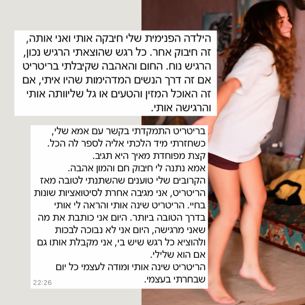 שתתמוך בתהליך שניצור יחד ותעצים את הריפוי.
